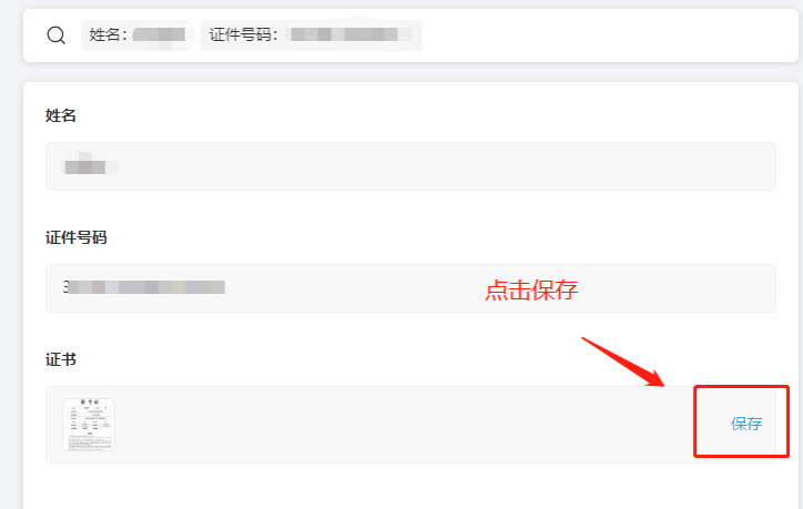 输入姓名和身份证号,保存证书